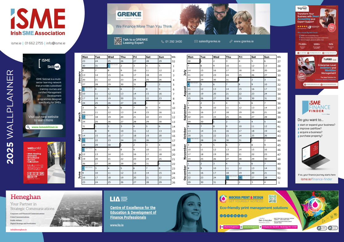 The 2025 Wall Planner will be distributed to ISME Members nationwide in December 2024.